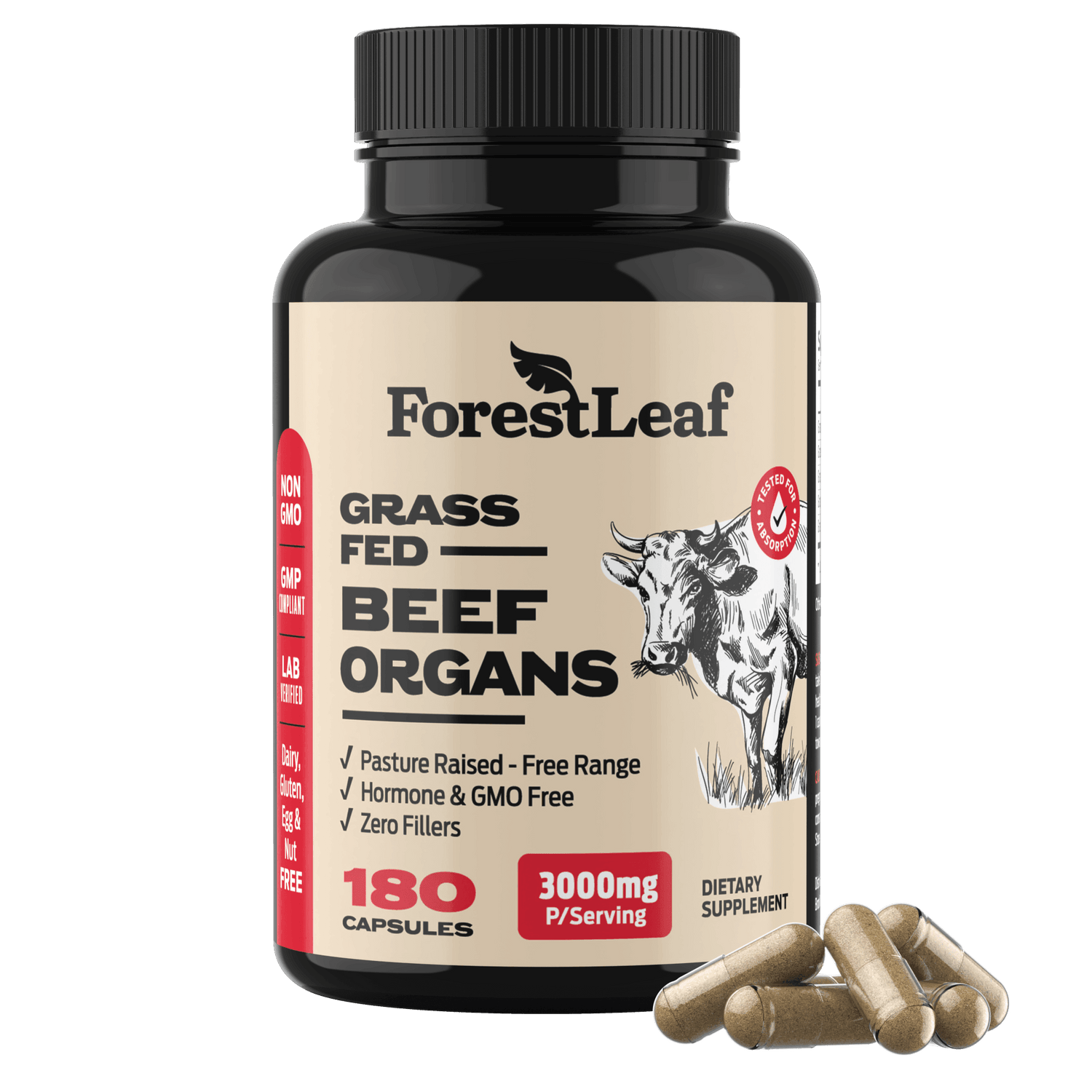 MAXIMIZE YOUR FULL POTENTIAL and harness the incredible benefits of organ meats with none of the strong taste, odor, or effort that goes into preparing and cooking them. ForestLeaf's Beef Organs Supplement delivers all the nutrition you need for total body wellness in a single 3000mg serving loaded with 600mg each of bovine liver, heart, kidney, pancreas, and spleen.