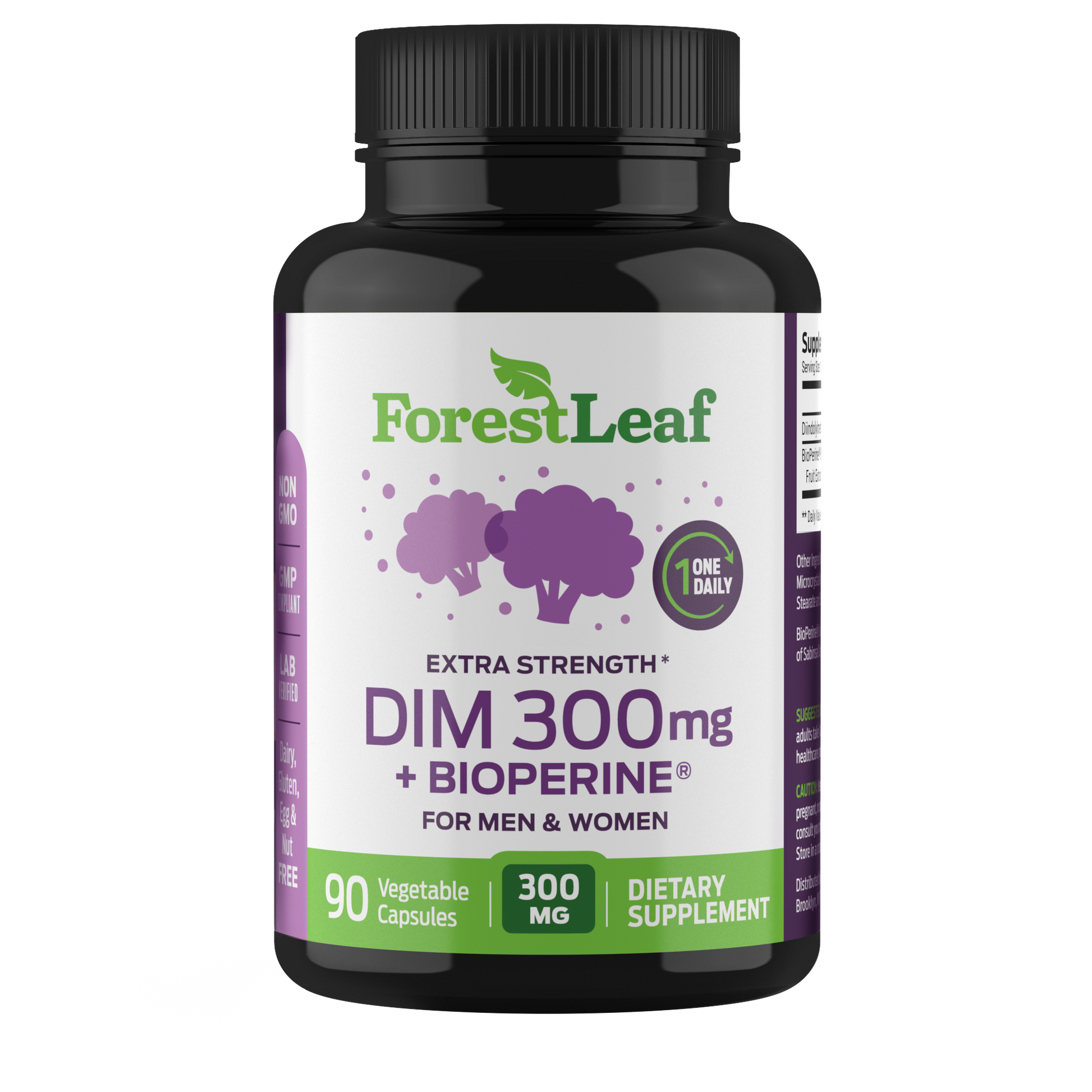 Take control of your wellness journey with ForestLeaf’s Extra-Strength 300mg DIM – a natural solution to support healthy metabolism and natural detox at different life stages. DIM (Diindolylmethane) contains nutrients found in cruciferous vegetables such as broccoli, Brussels sprouts, cabbage, cauliflower, and kale.