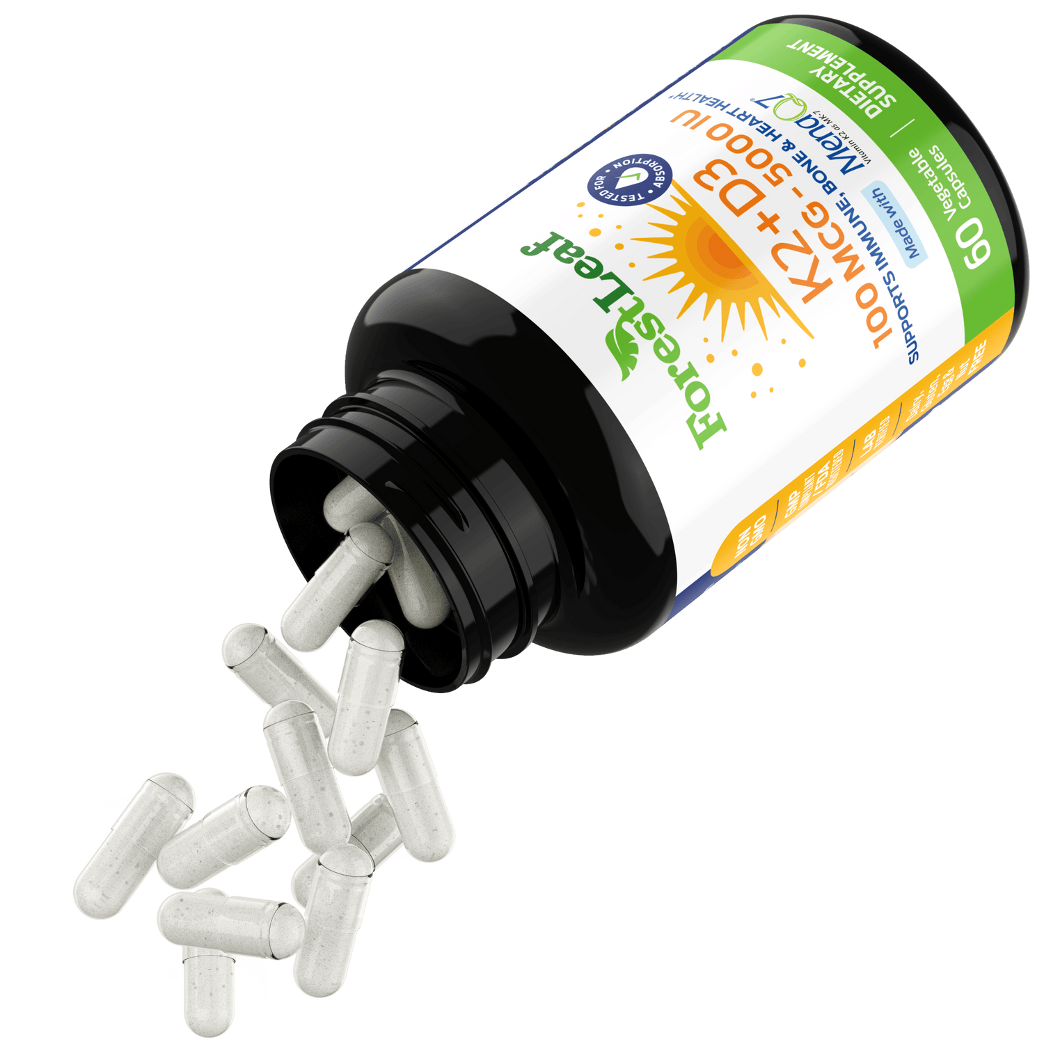 D3 + K2 = Working Better Together Maximum Calcium Absorption Experience the full range of benefits from Vitamin D3 when you combine it with the power of Vitamin K2. Vitamins D & K work together to metabolize calcium – both play critical roles in the absorption and distribution of calcium in the body. Get the most from your calcium intake with Forest Leaf Vitamin K2+D3.